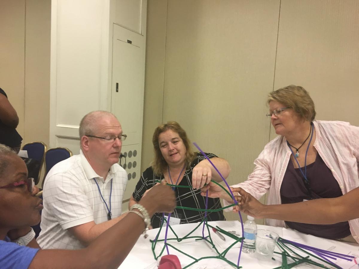 This was my first AFT TEACH conference, and I’m so overwhelmed with gratitude for the experience. I learned so much from the sessions, particularly from the Project-Based Learning Design Lab workshop. I was thrilled to learn about a great project-based learning activity to create public service announcements about important issues, such as the spread of the Zika virus. It was in this session that we were shown how to do a great team-building simulation, where we used pipe cleaners to build the highest freestanding tower. Cool, right? Sure, but to make this activity authentic and applicable to the real world, the facilitators added in problems like a labor strike, where we had to work with one hand behind our backs, and a language barrier, which forced us to work silently. I can’t wait to do this with my students this year. I usually begin with this Marshmallow Tower activity, but this new activity takes the authenticity to a whole new level with real-world problems integrated.