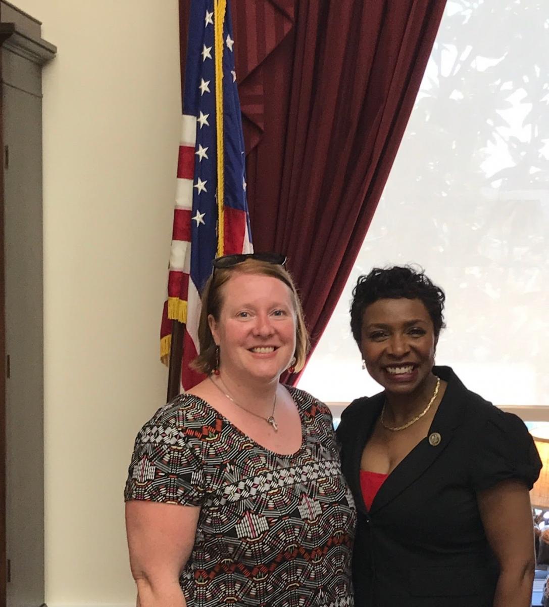 At the rally, I was awed by the enthusiasm, the crowd and, frankly, the solidarity that went into making this event work. I was standing behind my new friend, and a tall man walked up to her, looking concerned. I heard her say, “Well, Amber’s from New York, let’s talk to her.” Long story short, another AFT member who was supposed to meet with Congresswoman Yvette Clarke was nowhere to be found, and they were looking for someone to fill in. A few phone calls later, I was on my way to the Rayburn building to speak to the congresswoman about why #KidsNotCuts is important. I studied the talking points, but it didn’t take me long to know the story I’d tell.